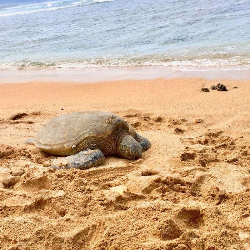 After enjoying the fruit, we’ll take you to a popular spot to see the “Honu,” or Hawaiian Green Sea Turtle! They often come ashore at this scenic point location to sunbathe.