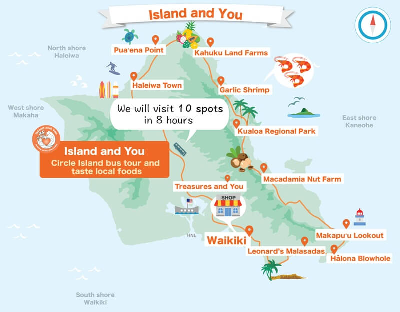 Island and You is a full-day circle-island bus tour, packed with some of Oahu’s best sights and plenty of delicious Hawaiian food! Visit historical sites, taste local favorite foods, learn about the culture of ancient Hawaiians and shop for the perfect souvenir as you tour around Oahu.