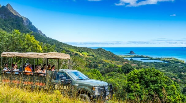 Buckle up for an adventurous and rugged open-air Jungle Expedition deep into our beautiful Hakipu’u rainforest. This lush and tropical valley was seen in Jurassic World, Kong Skull Island and Jumanji. Guests board one of our custom-built jungle vehicles for a 90 minute tour that rumbles along jungle trails, across isolated stream beds and powers up steep, bumpy hills for many spectacular views.